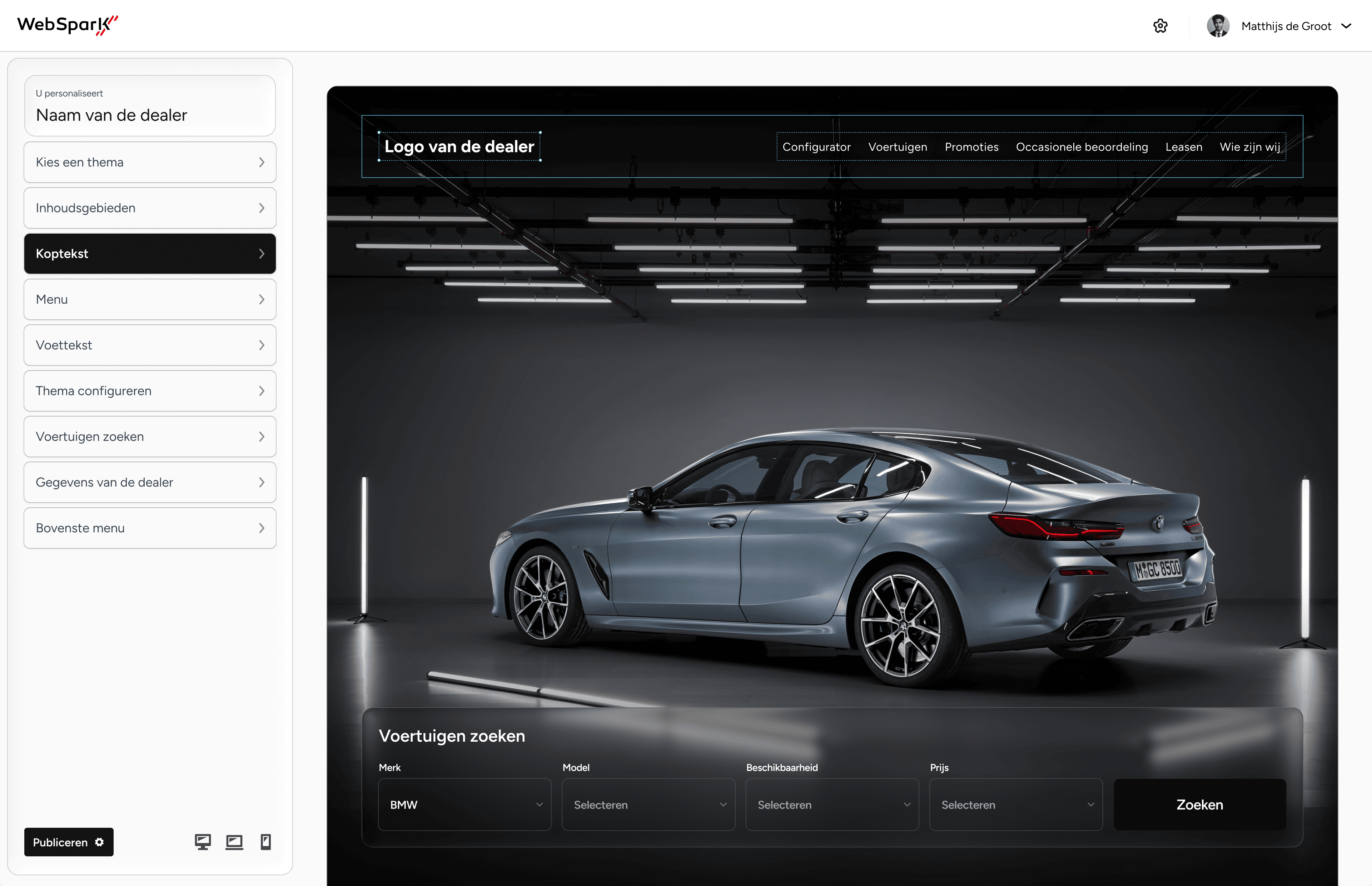Geavanceerde filteropties en redactionele kaarten, zodat gebruikers door voorraadvoertuigen kunnen navigeren.